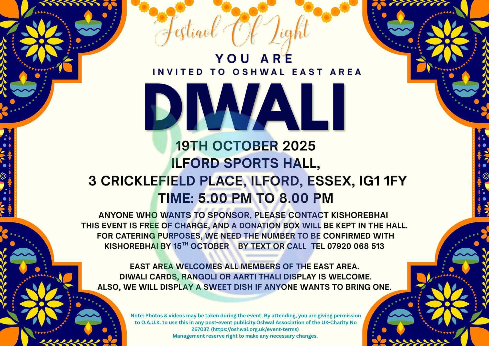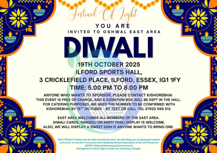 Please note that there is an amendment and the programme is now at an EARLIER TIME, from 5pm to 8pm to accommodate children. Please come with your children and grandchildren and register your names with Kishorebhai by 15th October.