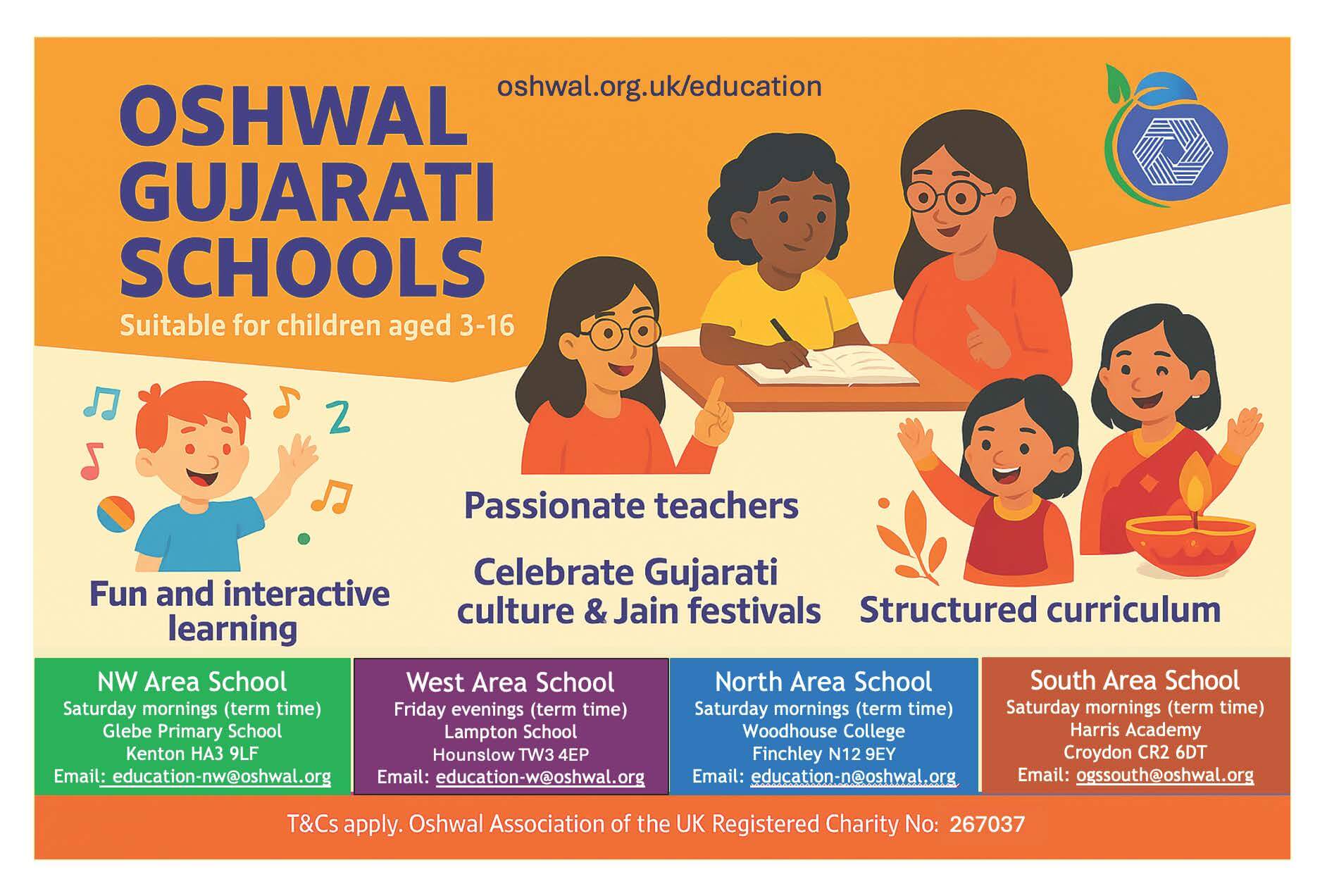 The teaching of Jain principles and festivals is also incorporated into the school syllabus, and extra-curricular and cultural activities are also offered. These include kathak, Bollywood dance and tabla at North Area school, yoga and games at West area school and kathak and yoga at South Area school. NorthWest area school also has children’s Jainism classes and adult Gujarati classes.