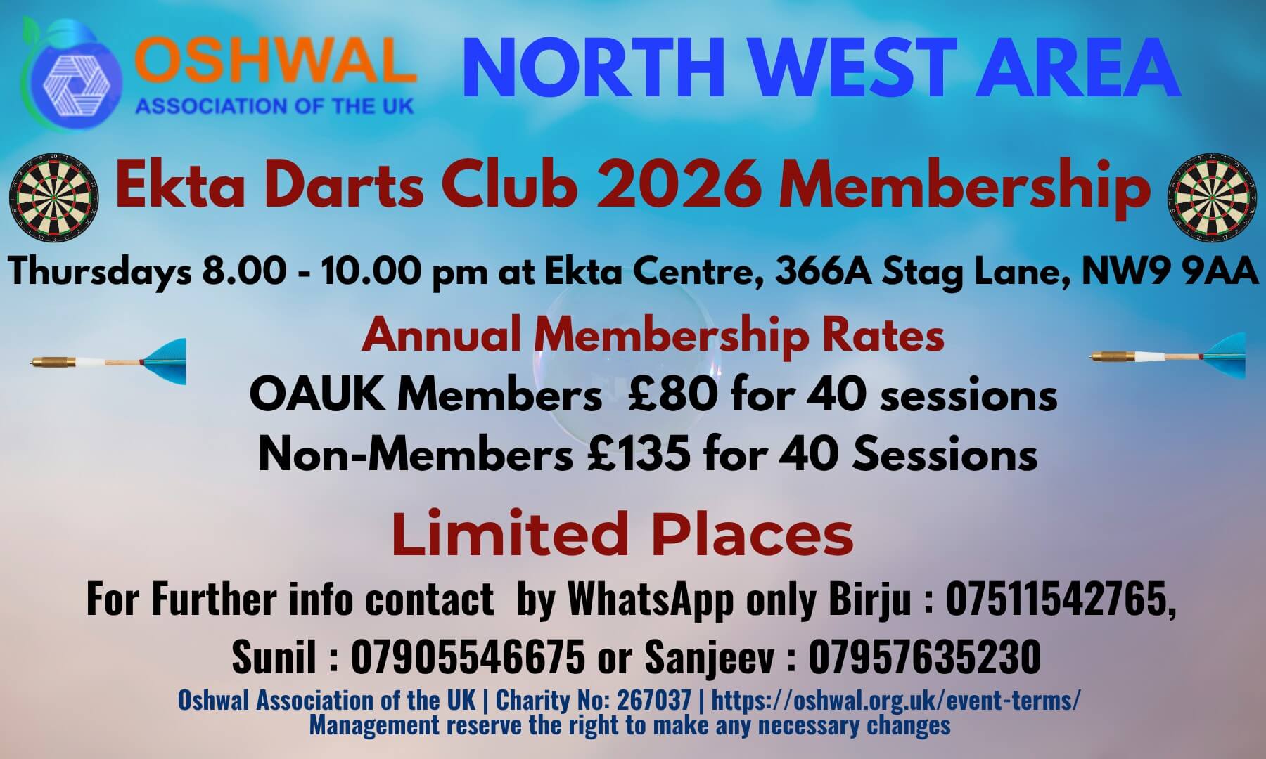 - By signing up for the Ekta Darts Club 2026 , you are agreeing to all the conditions below:-