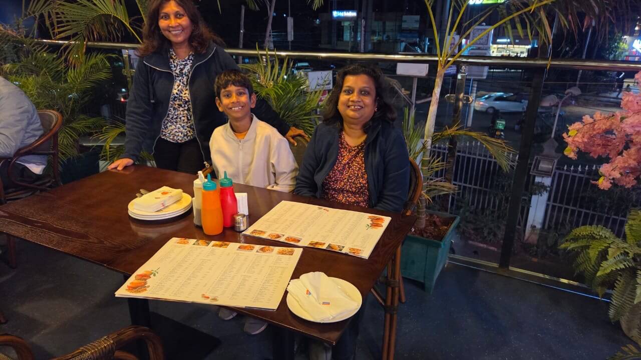 I know right. THEY HAVE A POOL!!!!! It was freezing but I didn’t care. After that, my two masis’s, Meenal Masi and Shital Masi, who by the way were very very nice to me, went to dinner with me. We went to an Indian restaurant called Slush, where we sat on a beautiful terrace in the fresh air. I also got introduced to crispy Kenyan Maru bhajias. This is my new favourite dish!