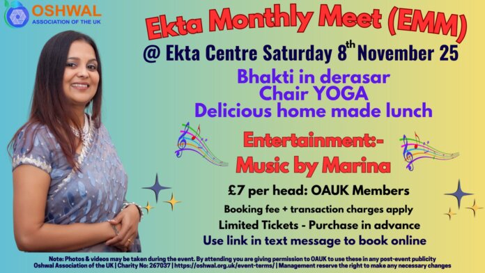 Please read the event terms & conditions https://oshwal.org.uk/event-terms/