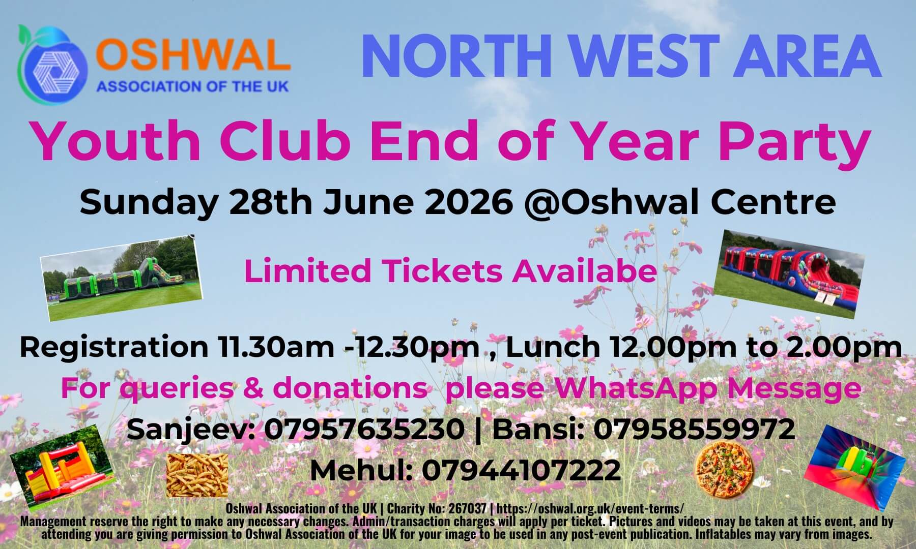 NW Area’s traditional End of Year Youth Club Party with delicious food, music, inflatables assault courses, bouncy castles and more.