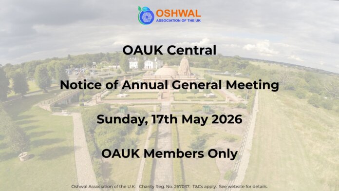 In keeping with Jain principles and promoting greener ways of working, you can request after 1st May 2026 our annual report, audited financial statements, SGM and AGM meeting minutes online by visiting: https://oshwal.org.uk/request-for-reports-55th-agm-2026 or alternatively call the Admin Office if you cannot request it online.